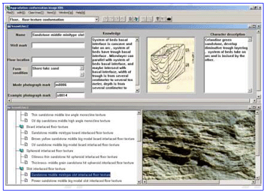 По анализу применения, система обобщает разные структурно-осадные явления, по типу разбивает на пять подбаз: подбаза слоя и слоистой структуры, подбаза слоистой поверхности, подбаза сингенетиской деформации, подбаза генезиса химии и обнаружения, подбаза биологических следов. Каждая подбаза по деревообразным структурам в дальнейшем подразделяется, ?конечный лист? отражает типичное изображение и соответствующие геологические знания конкретной структурно-осадочной характеристики.